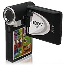 SVP HDDV2300 BLACK Digital Video Camcorder. Multi-Function device acts as a powerful 11 Mega Pixel Max. Output Digital Camera, a Full-Motion Digital Video Camcorder, a PC Camera, a Digital Voice Recorder. Camera also features a 16GB Max USB mass storage device and a memory card reader. Compact 5MP camera with 4X digital zoom and acts as powerful 11-megapixel max. with interpolation technology. Aperture range is 3.1 and Focal length is 7.5mm. Camera features large 2.4-inch full color LTPS LCD screen. Built in 32MB internal memory, expandable to 16GB of memory card. I/O terminals USB 2.0, TV Output (NTSC/PAL Option), playback taped video via your TV screen. Operated on two AA size batteries (included). Accessories include: Camera pouch, Wrist strap, Earpiece, Tripod and USB cable/AV cable. The Ultimate Expression Of Size And Power Measuring Only 4.19 X 2.3 X 1.18 This Cameras Slim Body Design Will Make It Great To Take Along Everywhere You Go!Product Details