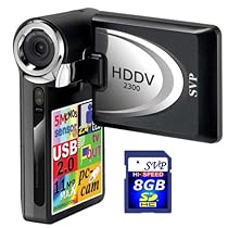SVP HDDV2300 Black Digital Video Camcorder. Multi-Function device acts as a powerful 11 Mega Pixel Max. Output Digital Camera, a Full-Motion Digital Video Camcorder, a PC Camera, a Digital Voice Recorder. Camera also features a 16GB Max USB mass storage device and a memory card reader. Compact 5MP camera with 4X digital zoom and acts as powerful 11-megapixel max. with interpolation technology. Aperture range is 3.1 and Focal length is 7.5mm. Camera features large 2.4-inch full color LTPS LCD screen. Built in 32MB internal memory, expandable to 16GB of memory card. I/O terminals USB 2.0, TV Output (NTSC/PAL Option), playback taped video via your TV screen. Operated on two AA size batteries (included). Accessories include: Camera pouch, Wrist strap, Earpiece, Tripod and USB cable/AV cable. The Ultimate Expression Of Size And Power Measuring Only 4.19 X 2.3 X 1.18 This Cameras Slim Body Design Will Make It Great To Take Along Everywhere You Go!Product Details
