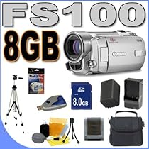 Canon FS-100 High Definition Flash Memory Camcorder Brand New USA w/ Full Manufacturer's AccessoriesRechargeable BP819 Lithium Ion Spare Battery + Quick External Rapid Travel Charger8GB SDHC Memory Card + USB SD Card ReaderPadded Carrying Case w/Strap + Lens/LCD Cleaning Kit + Pack of LCD Screen ProtectorsFull Size 58" Tripod W/Carry Bag + Flexible Mini Table Top Tripod (See Description For More Details)